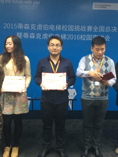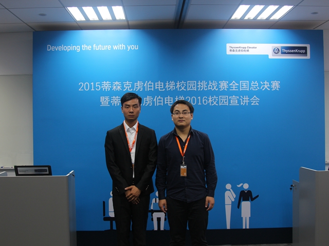 10月23日,由蒂森克虏伯电梯(中国)主办的蒂森克虏伯电梯校园创意挑战赛决赛在上海松江区的公司总部如期举行,来自全国七大赛区的区域优胜团队集聚上海总部争夺全国桂冠。他们从全国227支代表队中脱颖而出,beat365机械工程系蓝岛创行队作为华东赛区的优秀选手参加本次决赛答辩。经过一天的激烈角逐,最终以评委得分73.3分,微信投票得分4.9分,总分78.3分获得全国第四名的好成绩。
