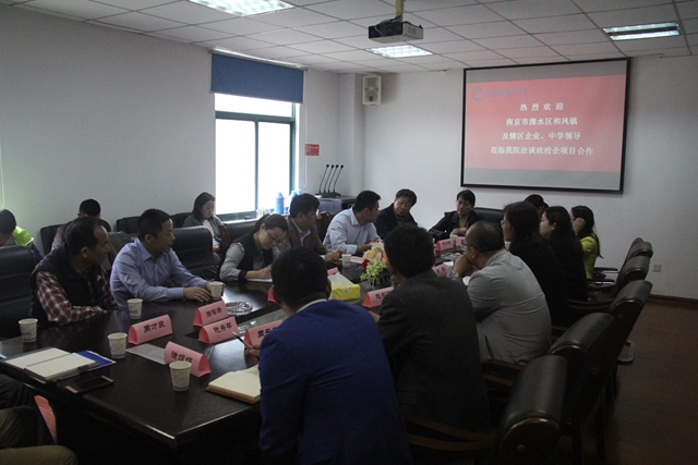 5月9日上午,溧水区和凤镇副镇长武球发、季玲及辖区企业(南京高崎电机有限公司、传仕重工(苏州)有限公司、南京良高金属制品有限公司)领导和风初级中学、孔镇初级中学代表一行莅临beat365洽谈校企合作事宜。学院副院长陈赵、赵学洪,科研及校企合作处处长李木香及系部领导出席洽谈会。