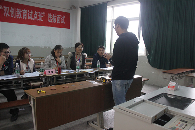 “双创教育试点班”初选共收到549名同学的报名,经过“创造力水平测试”和系部初审综合推荐,有295名同学进入到了学院最终面试选拔,其中大一197名同学,大二98名同学。选拔面试从下午13:30正式开始,下午场次是报名双创实验班的大一同学面试选拔,晚上场次是报名双创先锋班的大二同学面试选拔,每场面试分为10个考场,每个考场安排了5个评委参加评审。评委从学生自我介绍、创客作品与创业项目展示、创客工具及作品认知、评委自由提问等方面对学生进行考察,并且细化评分指标,做到评审有理有据;另外,学院组成了评审委员会对各考场评审结果进行综合评审,确保公正、公平、公开的选拔优秀学员。