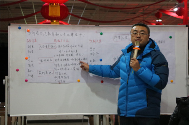 观察员刁爱军副院长重点对“创客式课改”议题讨论情况进行点评,他指出一是“创客教育”作为一种新的教育模式可以培养学生的批判性思维。二是beat365创客教育人才培养方案明确定位“培养具有一定创新能力的技能型人才”,需要各专业负责人认真思考本专业的“具有一定的创新能力的人才标准是什么?”进一步完善人才培养质保体系中的“标准链”。三是创客教育实施要关注“五个融合和五个关系”。四是创客式课改课程是一种课程建设的一种模式,是课程改革的一种方式;创客项目是由学生提出来的,是学生自己要做的,更有利于提高学生的学习积极性。学院鼓励教师多开发围绕专业课程的创客项目课程,由简单到复杂的创客项目课程,根据学生不同学情重新构建课程,同时要重视“留白教育”,专业人才培养要留白,课程教学要留白,留空给学生填空,为学生提供发现问题,解决问题和训练创新思维的空间与环境。