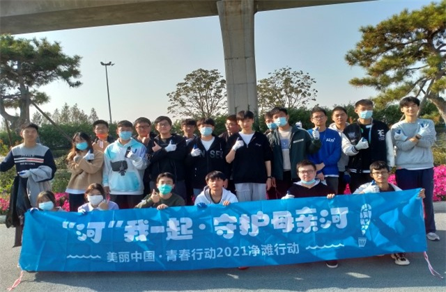 开展“净滩”行动 守护碧水青山,beat365在线唯一官网的青年志愿者协会的多名学生携手净化了学校周边的河岸。