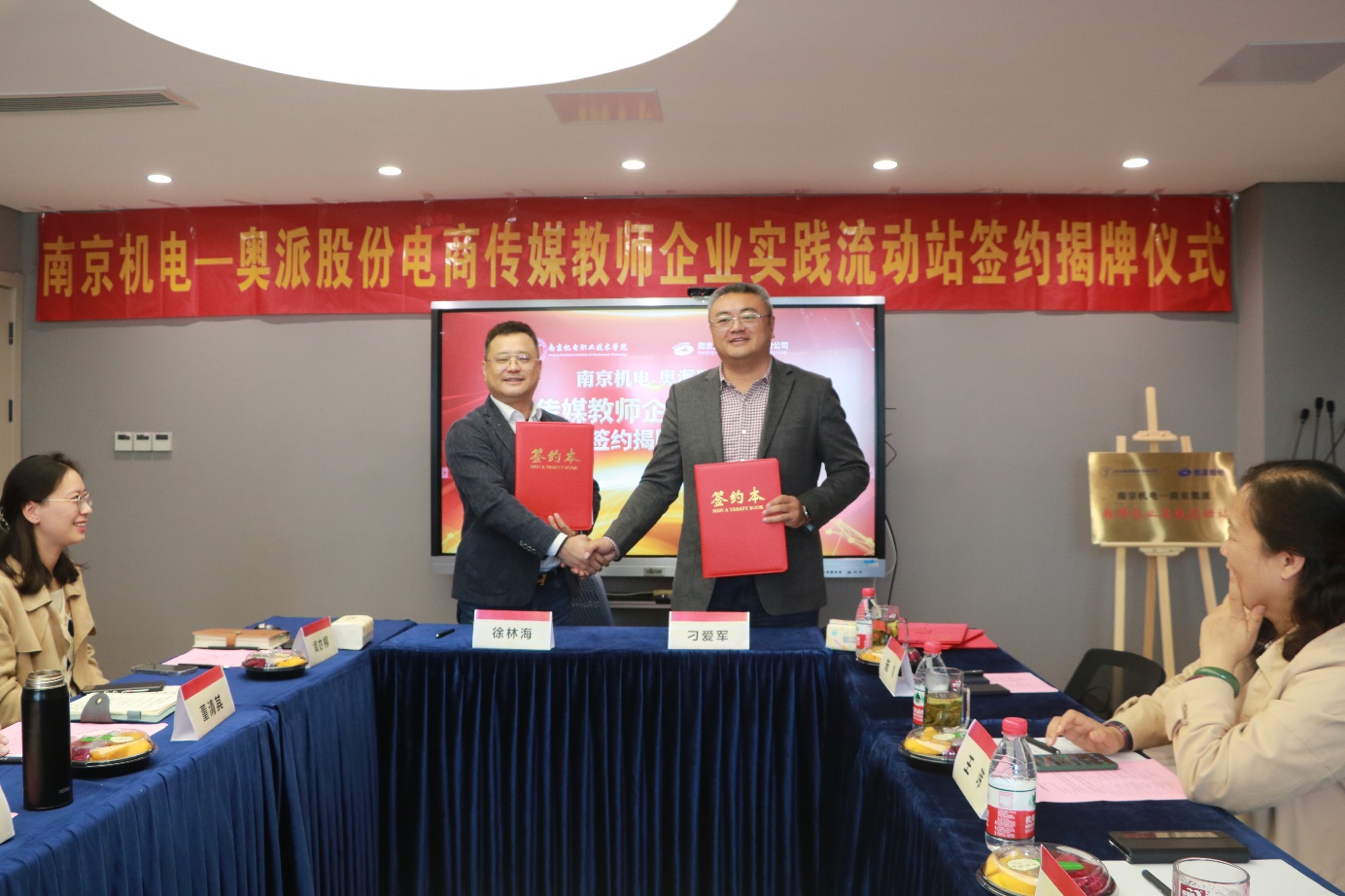 11月10日上午beat365党委委员、副院长刁爱军,科研及校企合作处处长李木香、信息工程系主任王玮、信息工程系副主任刘娴及进站教师一行赴南京奥派信息产业股份公司与董事长徐林海、常务副总裁董清其、产品中心总监王波、产品中心副总监刘飒等企业领导共同见证“beat365在线唯一官网-奥派股份电商传媒教师企业实践流动站”正式成立,为着力打造高水平"双师型"队伍、提升beat365教师专业实践能力提供了有力的平台保障。