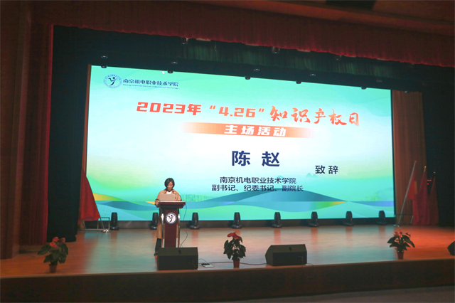 4月26日上午,一年一度的“4 ▪ 26”知识产权日主场活动在学校青春剧场如期举行。南京市知识产权保护中心副主任程秀才、高淳区市场监管局(知识产权局)二级高级主办、党委委员王双虎、南京苏高专利商标事务所专利代理师刘红阳、学校党委副书记、纪委书记、副院长陈赵等领导出席本次活动,学校各系部领导、全体教师及学生代表参加活动。