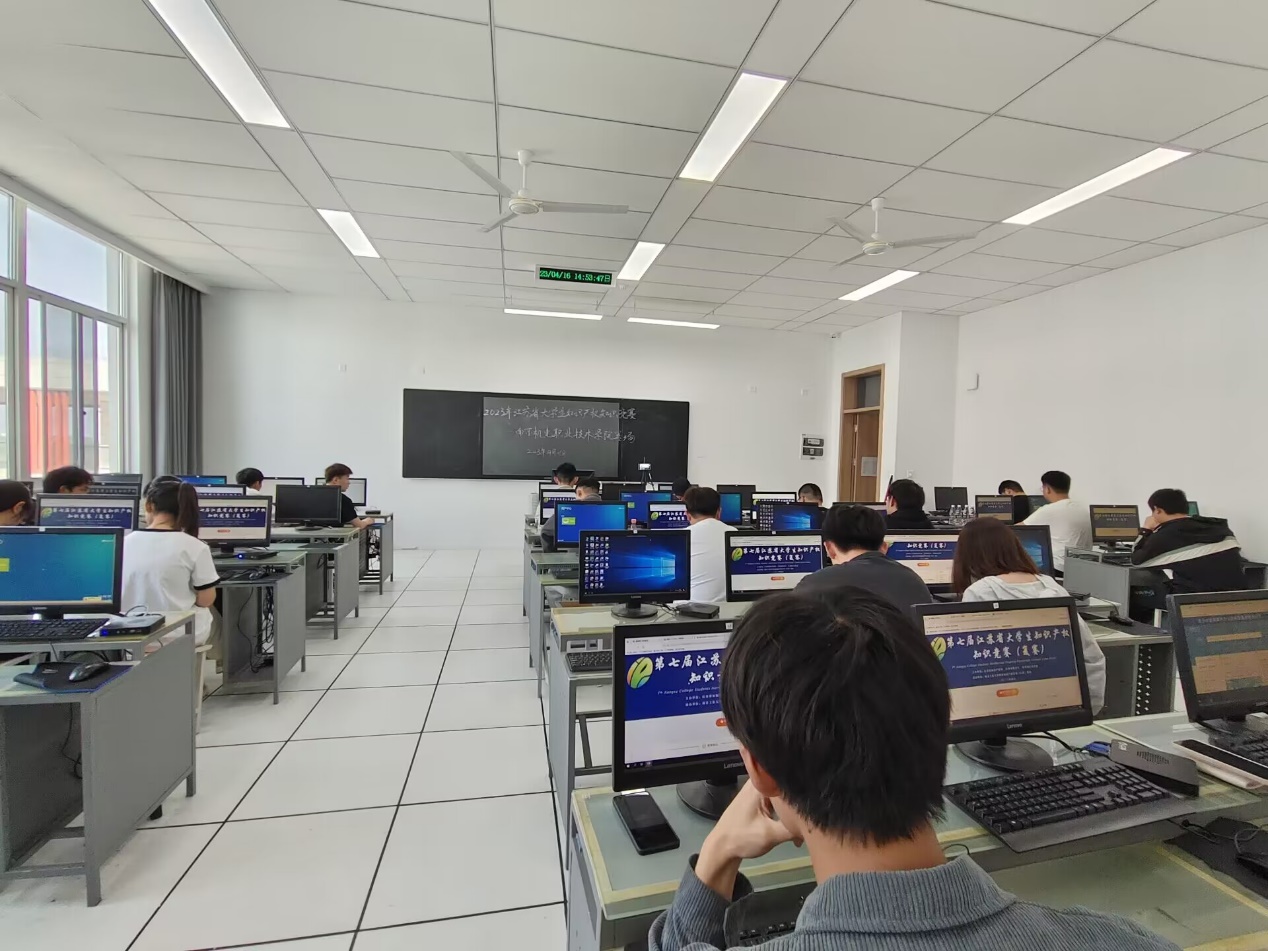 学校高度重视江苏省大学生知识产权竞赛。自江苏省知识产权局《关于开展 2023 年江苏省大学生知识产权赛事活动的通知》发布以来,学校组织大一、大二全体学生认真学习《知识产权读本》。经过系部初赛选拔,20名学生入围校内复赛环节。4月16日,2023 年江苏省大学生知识产权竞赛正式开赛。