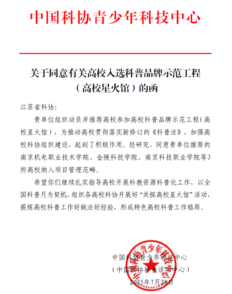 近日,中国科协青少年科技中心公布了入选中国科协青少年科技中心2025年度科普品牌示范工程(高校星火馆)项目的高校名单,其中beat365在线唯一官网成功跻身榜单,这是对beat365在线唯一官网科普工作的高度认可和肯定。