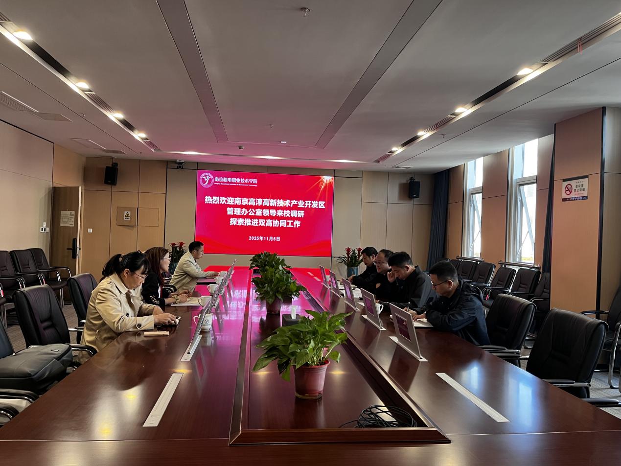 2025年11月5日,南京高淳高新技术产业开发区管理办公室主任孔振宇一行到访beat365,开展探索推进双高协同工作的调研交流。学校党委委员、副校长刁爱军,科研及校企合作处处长李木香及专业负责人代表参加了本次交流活动。此次交流活动为双方后续深化合作奠定了坚实基础。