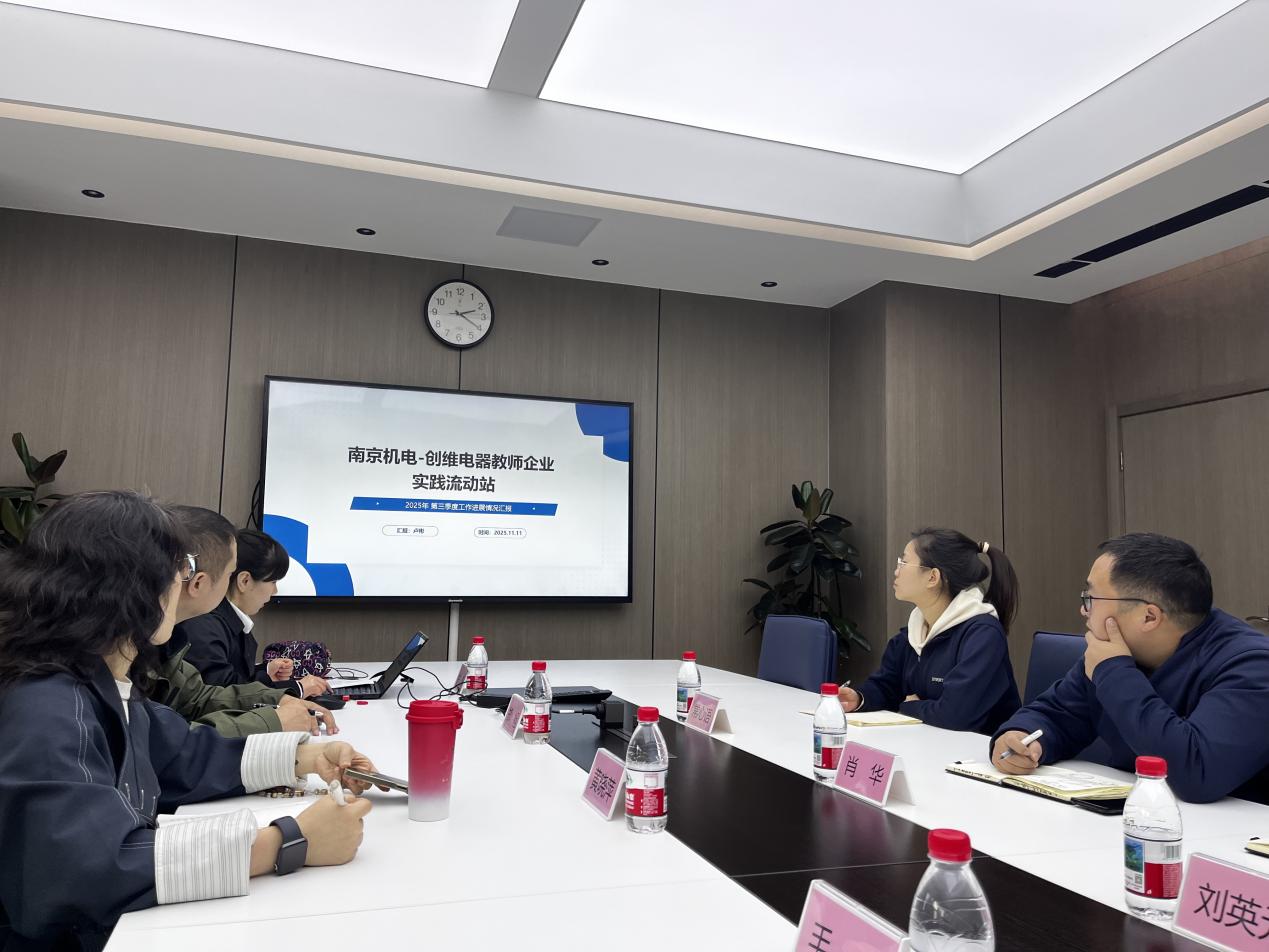 2025 年 11 月 11 日,学校机械工程系组织beat365—创维电器、beat365—工艺装备党建共建教师企业实践流动站联合开展 2025 年第三季度复盘交流会,会议在创维电器股份有限公司举行。创维电器人力资源部经理刘英元、工业设计中心经理肖华,南京工艺装备制造有限公司代表郑旭,学校机械工程系主任毛奇,副主任黄晓萍等领导出席会议。两个流动站的负责人及进站教师参加复盘交流会。