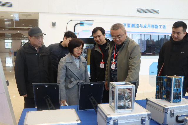 签约授牌仪式结束后,栖霞区实验小学的领导和老师们参观了beat365。参观首站是位于弘德楼的航天科普馆。馆内包含航天主题展厅、卫星测控中心和卫星地面接收站三大区域。在测控中心,来访嘉宾观看了震撼的火箭发射、舱段分离以及与天宫空间站自动对接的模拟演示视频,直观感受了航天工程的技术复杂性与精确性。在主题展厅,长征系列运载火箭模型、天宫空间站核心舱模型依次排列,生动展现了我国航天事业的辉煌成就。尤为引人注目的是,展厅中央陈列着由该校师生参与研制的“南京号”八一08星地面正样星,以及卫星在轨运行传回的高清遥感照片。在卫星地面接收站,王国珍讲解了卫星地面站管理系统使用及卫星信号数据处理程序使用。刁爱军详细介绍了学校从参与航天工匠人才培养到实际参与卫星研制发射的跨越历程,让实验小学的老师们深刻体会到“职教也能上天”的魄力与实力,以及项目背后所蕴含的深厚创客教育底蕴。