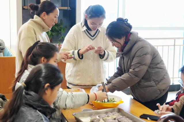 一盘盘形态各异的七彩水饺新鲜出炉,师生共同分享热气腾腾的饺子、寓意吉祥的八宝粥、元宵和暖意融融的老母鸡汤。活动中,更有教师家庭携萌娃参与,感受社区“大家庭”的温馨氛围。