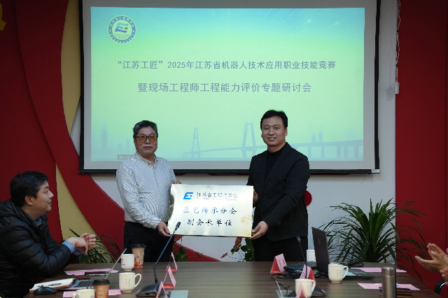 会议最后,孟庆杰代表学会向beat365授予“江苏省工程师学会匠艺传承分会副会长单位”称号。此次授牌是对beat365在工程技术创新与技能人才培养方面工作的充分肯定,也标志着beat365在机器人技术应用与工程师工程能力评价领域的合作迈入新阶段。