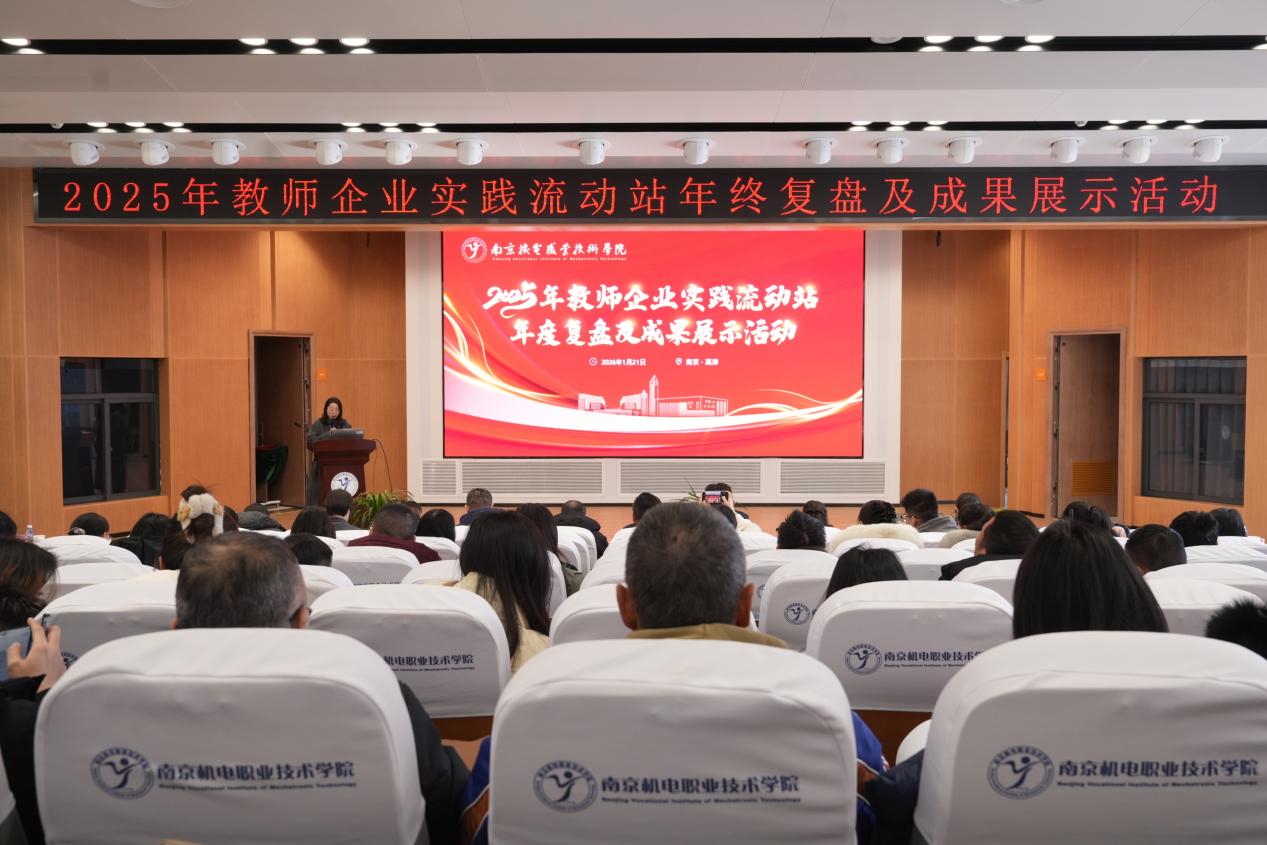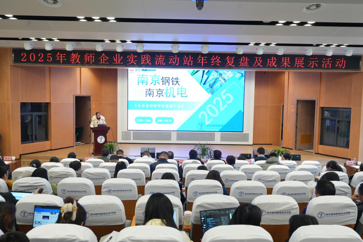 2026年1月21日下午,2025年教师企业实践流动站年终复盘及成果展示活动在学校乐学楼报告厅举行,全面总结一年来教师企业实践流动站的建设成效,表彰先进典型,共谋未来发展蓝图。南京高淳高新技术产业开发区管理办公室副主任吕鹏飞、南京高等职业教育创新创业园管委会副主任汪春荣、南京市高淳区工业和信息化局产业推进科科长孙立琰,学校党委书记、校长周庆礼,党委委员、副校长刁爱军、以及来自南京钢铁股份有限公司等合作企业领导,学校职能部门、系部负责人等领导出席活动,流动站团队成员及全体专业教师共200余人参加本次活动。活动由科研及校企合作处教师朱洪霞主持。