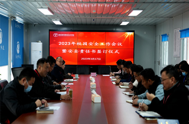 为进一步强化全校教职工的安全责任意识,落实校园安全责任制,切实做好学校的安全教育和管理工作,3月17日下午1点30分,beat365召开2023年校园安全工作会议。会议由党委委员、副院长赵学洪主持,全体校党委委员以及各部门主要负责人参加了会议。