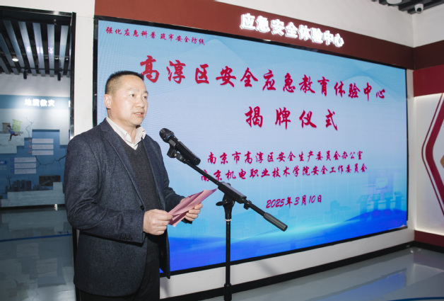 周庆礼在致辞中强调,安全是发展的生命线,应急是治理的试金石。他表示,学校安全应急教育体验中心正式由校级延展为区级,这既是对学校安全教育工作的高度认可,更是一份沉甸甸的责任。学校将以构建全链条覆盖的安全教育体系、实施全要素赋能的教育创新工程和建立全周期联动的应急响应机制三个战略定位推动安全效能提升。学校将以今天的揭牌仪式为新的起点,与高淳区携手共进、开拓创新,共同绘就人人懂避险、户户会应急、处处有保障 的平安长卷。通过校地双方的深度合作,将高淳区应急安全教育体验中心打造成长三角地区具有示范效应的安全教育标杆,为建设更高水平的平安高淳、平安南京贡献智慧和力量。
