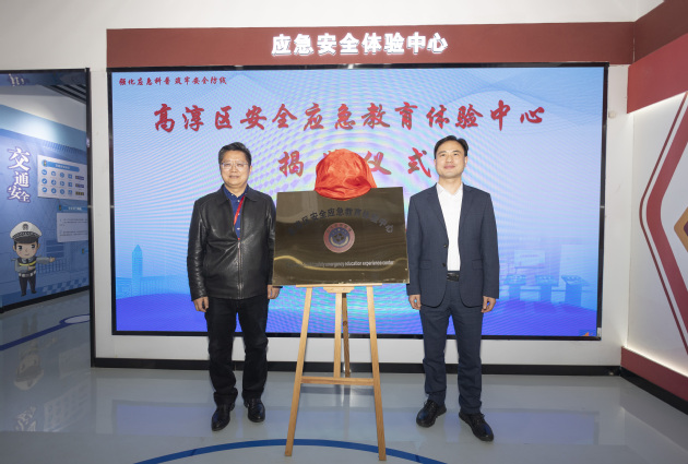 胡学艺与周庆礼共同为高淳区安全应急教育体验中心揭牌。