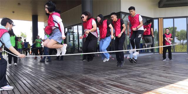 通过破冰、融入,现场分为了4个小组,每个小组都包含了学院和建管集团的员工代表。通过挑战五分钟,小组成员快速相识、相知并熟悉。随后,四组进行如锣鼓颠球、传递正能量、集体跳绳、急速六十秒、皮划艇竞赛等团队项目的趣味比赛。