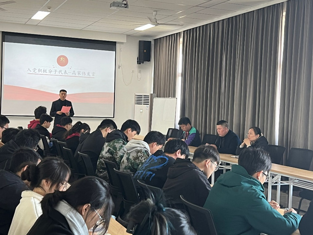 会上,入党积极分子代表高家伟作了表态发言。他表示要在以后学习和生活中,以习近平新时代中国特色社会主义思想为指导,以身边的优秀党员为榜样,按照新《中国共产党章程》的要求,以共产党员的标准严格规范自身的言行,为实现中华民族伟大复兴贡献力量。