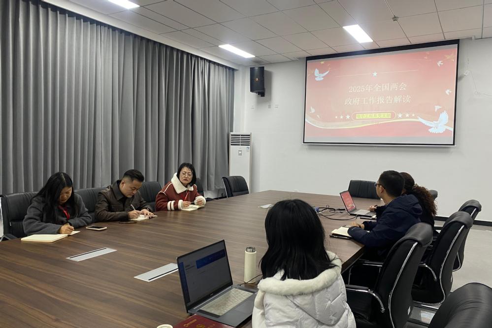 3月13日,电子工程系党支部全体党员在慎行楼304会议室开展政治学习,由组织委员朱倩主讲,重点解读了2025年全国两会政府工作报告。