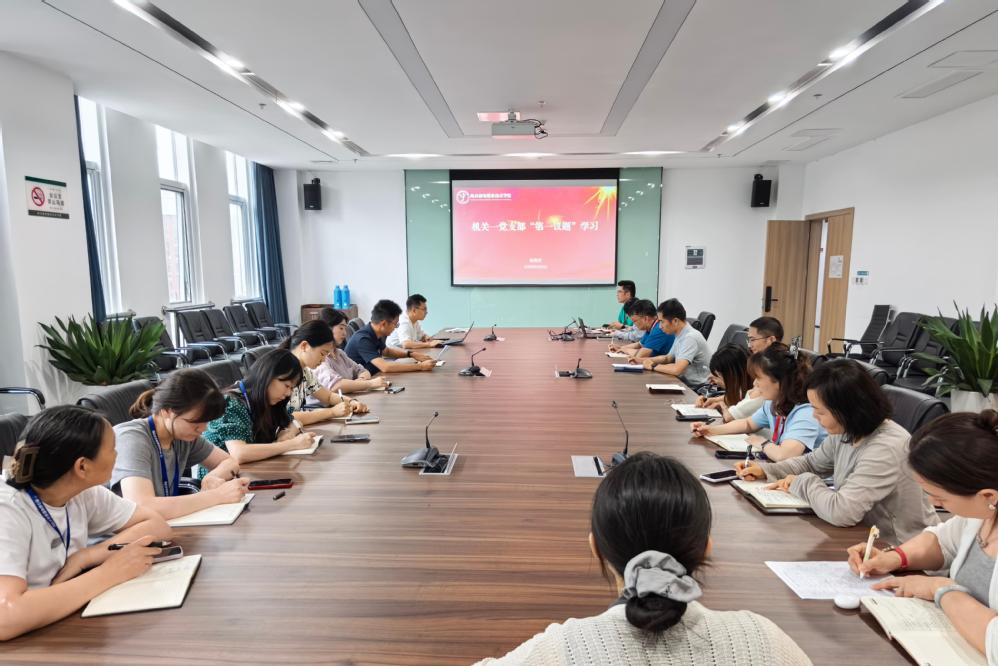 为深入贯彻落实党的政治理论学习要求,强化师德师风建设,助力学校事业高质量发展,6月20日下午,机关一党支部与纪委机关党支部在育德楼210会议室联合开展政治理论学习。两支部全体教职工参加学习,会议由支部负责人统筹安排,围绕 “第一议题” 学习、师德师风专题教育展开深入研讨。