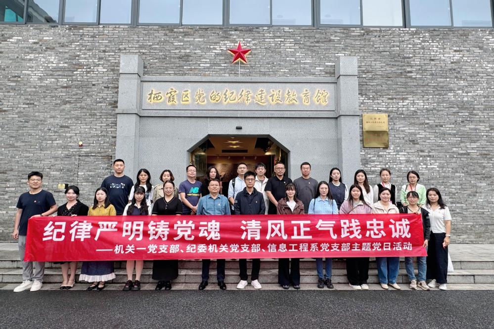为进一步强化党员的纪律意识与规矩意识,推动纪律教育走深走实,10月16日,机关一党支部、纪委机关党支部和信息工程系党支部前往南京市栖霞区党的纪律建设教育馆联合开展了“纪律严明铸党魂,清风正气践忠诚”主题党日活动。此次活动通过实地参观学习,让党员们在直观感受中深化对党的纪律建设重要性的认识,汲取纪律力量,锤炼党性修养。
