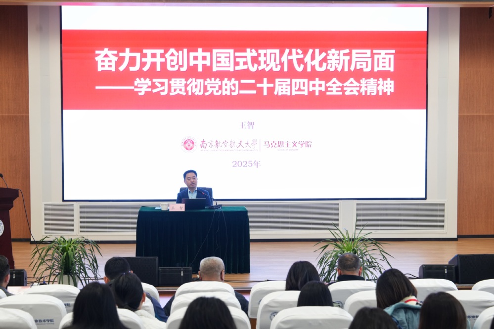 本次培训特邀南京航空航天大学马克思主义学院院长王智教授作《奋力开创中国式现代化新局面——学习贯彻党的二十届四中全会精神》主题讲座。培训以解读党的二十届四中全会精神为核心,旨在帮助参训人员从新时代新征程的使命任务中汲取奋进力量,准确把握中国式现代化的核心要义。王智教授的讲解高屋建瓴、内涵丰富,既做了理论层面的深度阐释,又提供了实践层面的精准指导,为参训人员将全会精神与教育教学工作深度融合提供了重要遵循。