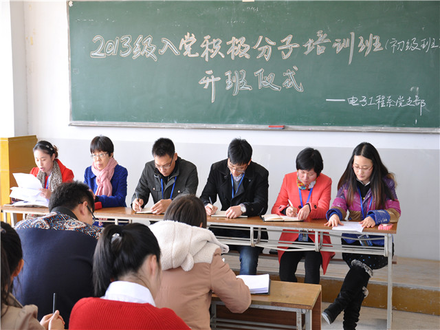 11月18日中午12:30,beat365在线唯一官网电子工程系党支部在教学楼A208举行2013级入党积极分子初级班培训开班仪式。电子工程系党支部书记张宝中,宣传委员梁金平,组织委员林雪,党员惠珍、权海平、杨瑞以及31名积极分子学员参加了此次开班仪式。仪式由林雪老师主持。