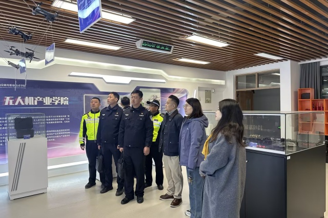 2025年1月7日,高淳区交警大队代表在队长隋中的带领下莅临电子工程系,就无人机产业发展与合作进行深入指导与交流。此次代表们的来访不仅彰显了地方政府与行业院校之间的紧密联系,也为双方未来的合作奠定了坚实基础。