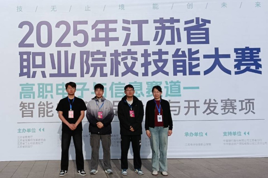 2025年4月16日至18日,由江苏省教育厅主办的2025年中国银行杯江苏省职业院校技能大赛“智能电子产品设计与开发”赛项在江苏电子信息职业学院举办。本次大赛吸引了来自全省39所职业院校的优秀选手同台竞技,经过激烈角逐,我系电子信息工程技术专业刘庆华、郭晓凤老师指导的学生团队张文宝、孙青松、蔡昕展荣获学生组三等奖,在全省39所职业院校队伍中排名第十六。