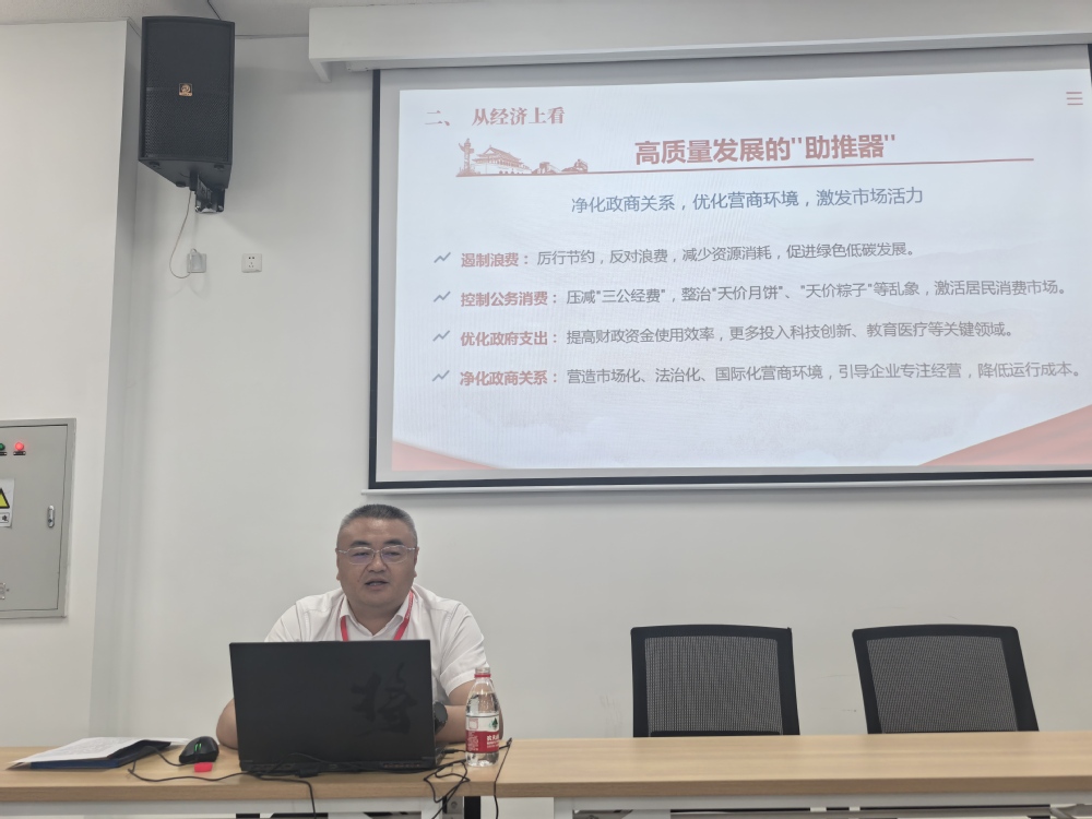 刁爱军系统阐释了中央八项规定作为全面从严治党“金色名片”的历史性意义。他指出,这一制度切口虽小,却以徙木立信之姿强力重塑了政治生态——从政治纪律、思想建设到干部管理、反腐倡廉,“严”字贯穿始终。在经济层面,中央八项规定成为高质量发展的“助推器”,通过遏制浪费、净化政商关系优化了营商环境。社会层面,它直指群众痛点,严惩“蝇贪蚁腐”,重拾民心信任。文化上则祛除糟粕,引领崇实尚俭新风,厚植廉洁文化根基。在国家治理现代化进程中,中央八项规定更推动基层减负、激励担当作为,完善权力监督体系。