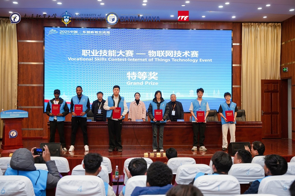 2025年11月22日,由中国—东盟教育交流周组委会秘书处指导、南通职业大学主办的“2025中国—东盟教育交流周职业技能大赛物联网技术赛项”在南通职业大学隆重开幕。来自中国及菲律宾、印度尼西亚、新加坡等东盟国家的68支决赛队伍齐聚一堂,围绕物联网应用技术展开激烈角逐。