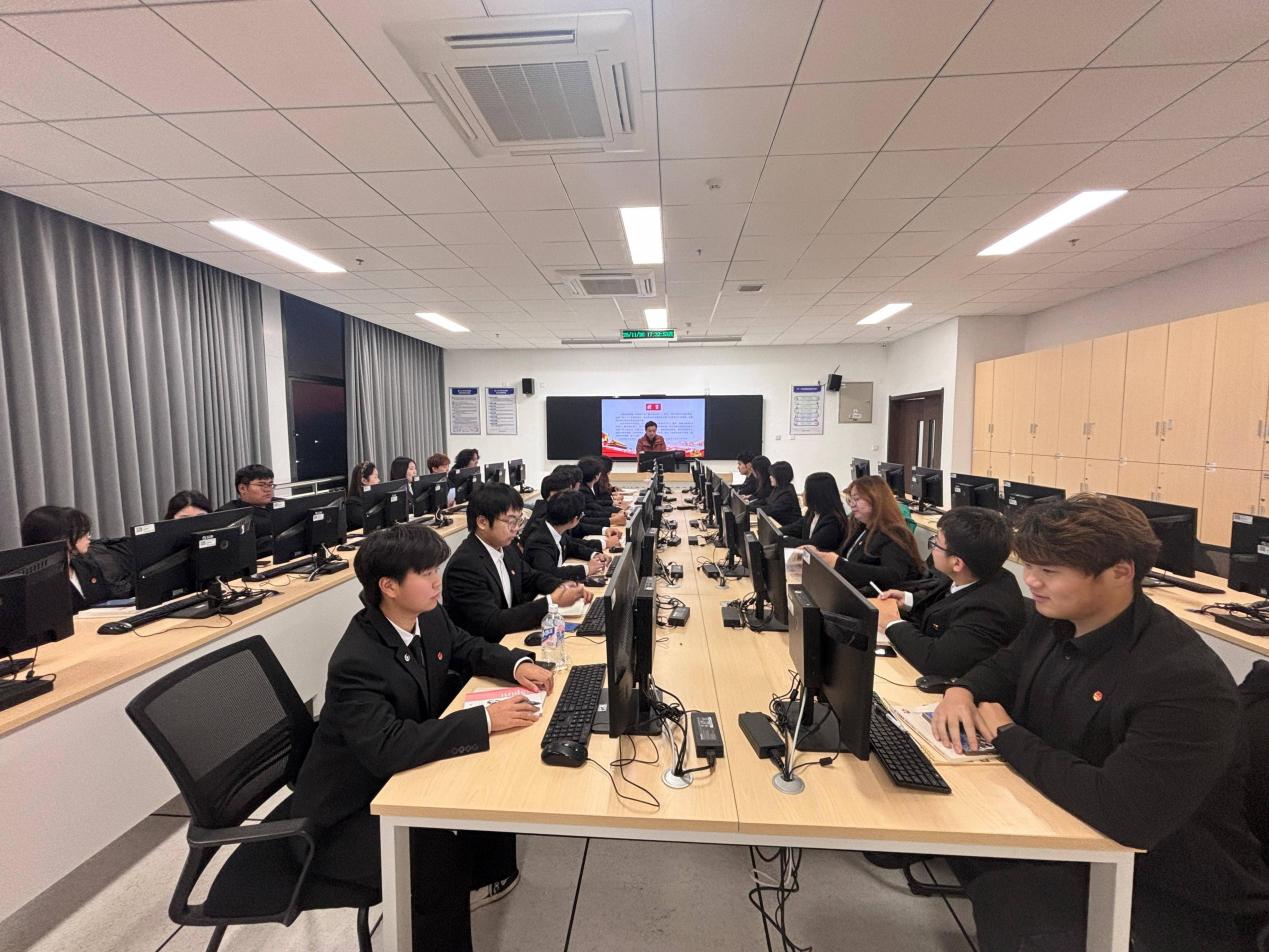 2025年11月19日晚,在第三节课上,纪检委员张晨通过集中授课的形式,深入学习了党的光辉历程。他带领学员们回顾了雨花英烈等革命先烈的光辉事迹,特别是恽代英、邓中夏和史砚芬三位英雄为了民族的解放和人民的幸福英勇无畏、无私奉献的精神,让学员们更加深刻地认识到今天的幸福生活来之不易,激发了他们为实现中华民族伟大复兴而努力奋斗的决心。