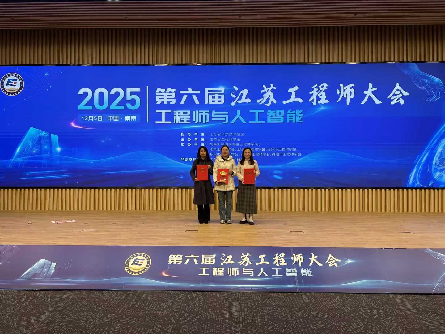 本次大会规格高、议题前沿。开幕式上,江苏省产业技术研究院院长刘庆、中国工程院院士缪昌文、省科协副主席方胜昔等领导嘉宾分别致辞,强调了工程师群体在国家科技创新体系中的核心作用,并指出人工智能与各工程领域深度融合已成为必然趋势。在随后举行2025年度江苏省工程师学会科学技术奖颁奖仪式中,beat365团队代表稳步上台,从颁奖嘉宾手中接过了象征荣誉与肯定的二等奖证书。这份荣誉不仅是对项目本身技术先进性与应用价值的认可,更是对团队师生长期不懈、协同攻关的科研精神的褒奖。