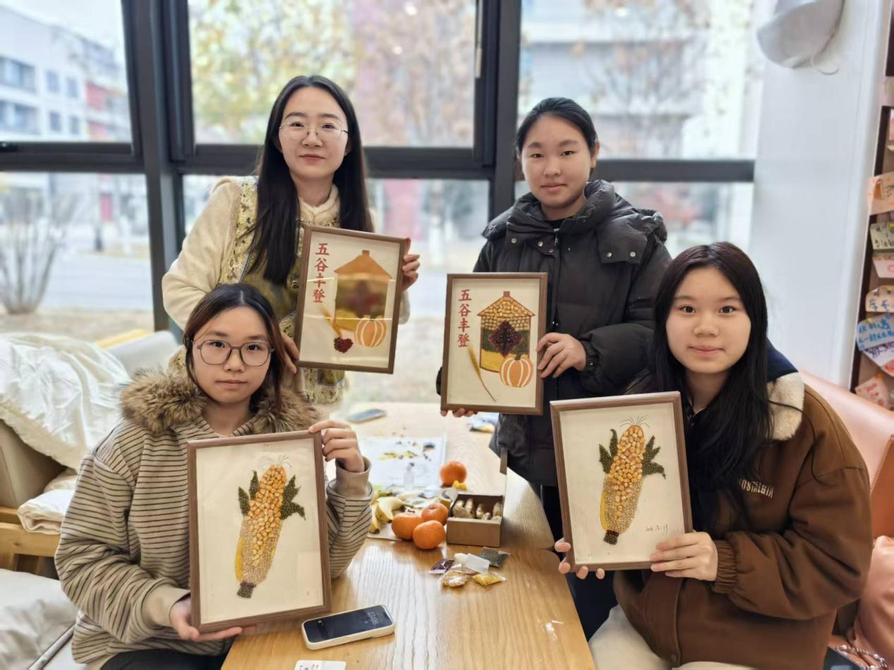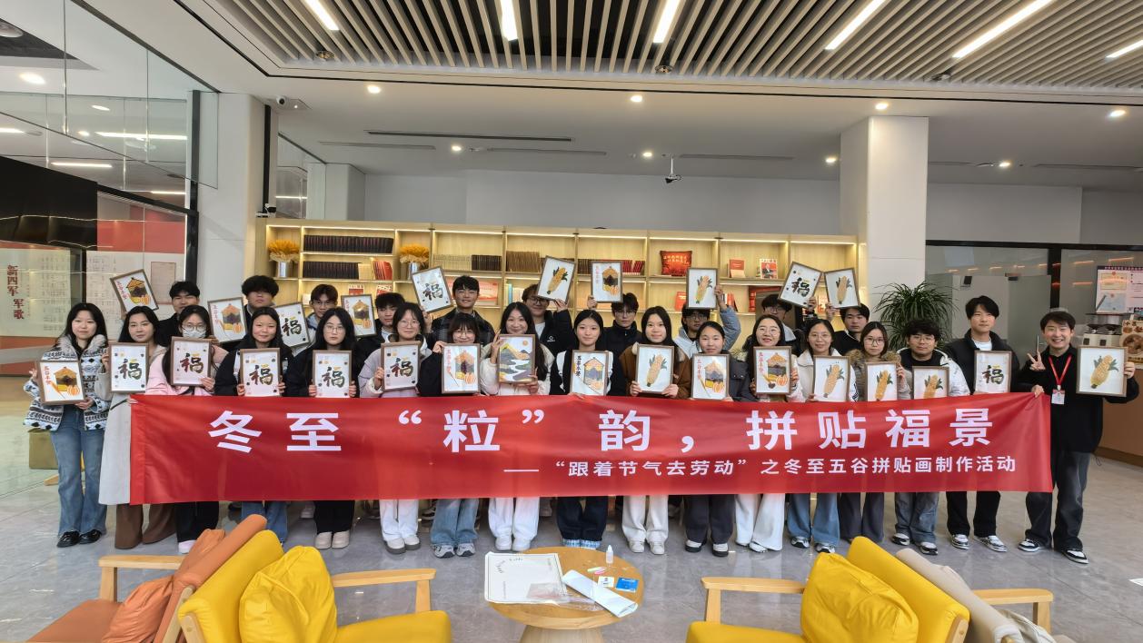活动尾声,师生将作品精心装裱、展示分享,让谷物艺术走进生活、传播文化。这场兼具温度与深度的劳动实践,不仅拼贴出冬至的福韵美景,更在每个人心中播下热爱传统、勤于创造的种子。
