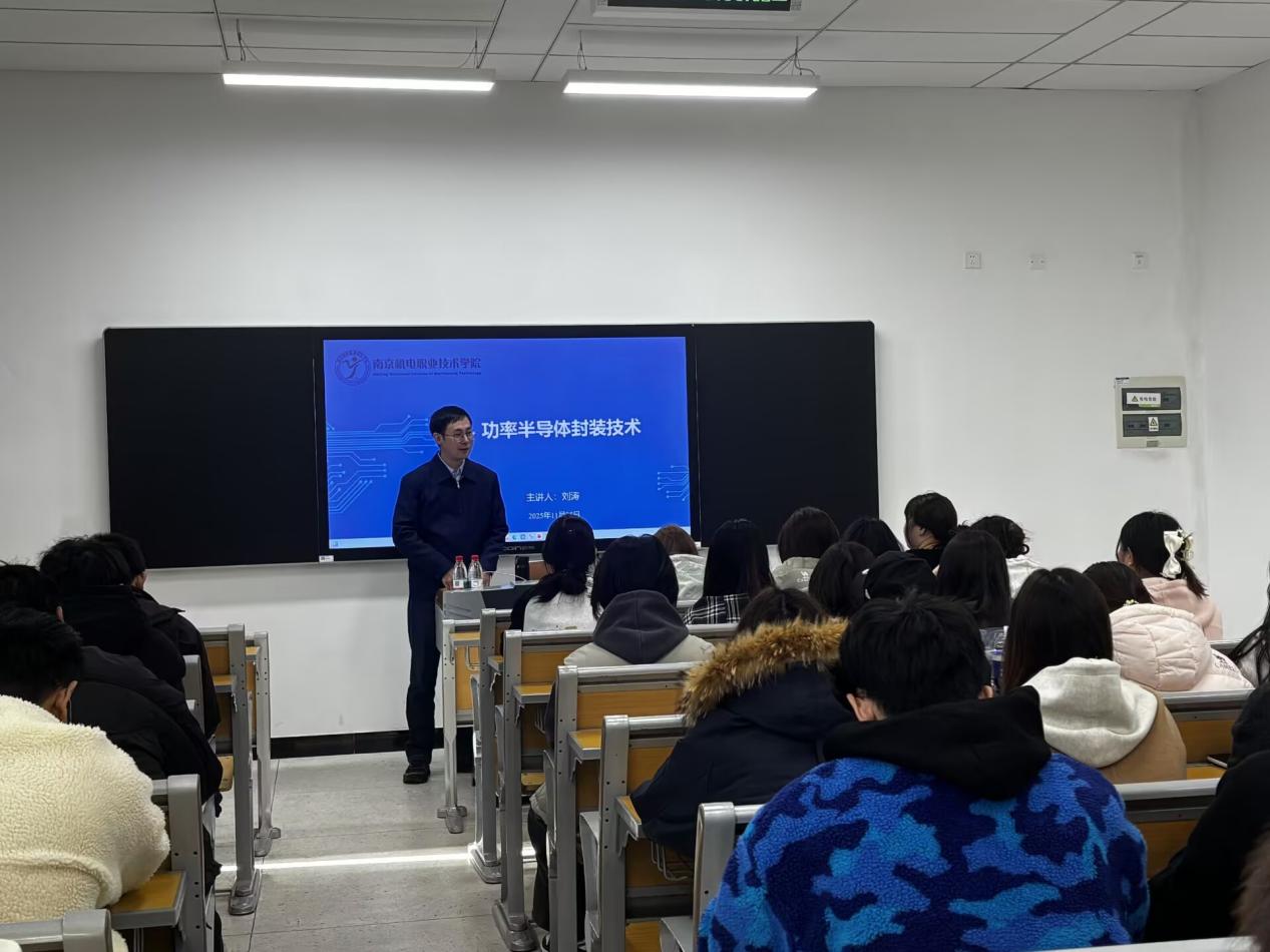 电子工程系大力推进课程内容与产业技术前沿同步更新,以“项目共研、案例转化、课程共建”为路径,促进企业真实技术案例向教学资源转化。校企双方明确将五十五所集成芯片事业部的技术标准与工艺案例,系统融入《电子信息项目基础训练》《电子信息产品设计与装调》等核心课程。同时,邀请企业高级工程师进校举办“功率半导体封装技术”等专题讲座,使学生直面行业前沿工艺,增强课程内容的先进性与实用性,更是让学生在校内便能洞悉行业动态与技术难点,显著增强了学生的岗位适应能力和技术应用能力,为其未来职业发展打下坚实基础。