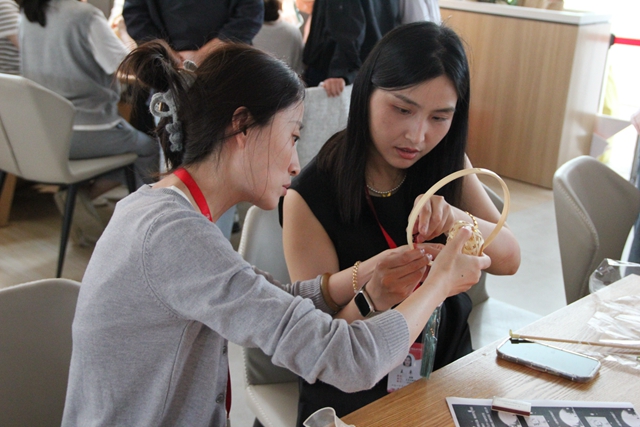活动现场氛围轻松愉悦,师生积极参与,在阵阵欢声笑语中,大家感悟到了传统手工技艺的魅力,在增进师生感情的同时,共同享受着节日带来的甜蜜。