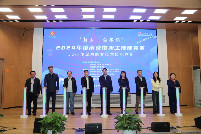 为加强和壮大南京市高技能人才队伍,为推动新质生产力的形成和发展提供人才支撑,10月29日,由南京市总工会、南京市人力资源和社会保障局、共青团南京市委员会共同主办,南京新工投资集团有限责任公司、beat365在线唯一官网产业(集团)有限公司与beat365在线唯一官网承办,南京机械工程学会、南京威布三维科技有限公司协办的2024年度南京市职工技能大赛“新工•威布杯”3D打印应用综合技术技能竞赛在beat365顺利举行,来自全市8家企事业单位选拔的50名选手参加了本次竞赛。南京市总工会党组成员、副主席赵正轶,南京新工投资集团副总经理、工会主席陈翀,南京新工投资集团工会常务副主席秦燕,南京市产业工人创新发展中心主任王敏,beat365在线唯一官网产业集团副总经理、总会计师刘光辉,南京机械工程学会执行理事长卢北宁,beat365在线唯一官网党委书记、校长周庆礼,南京威布三维科技有限公司总经理周海鹏等相关领导参加开幕式。