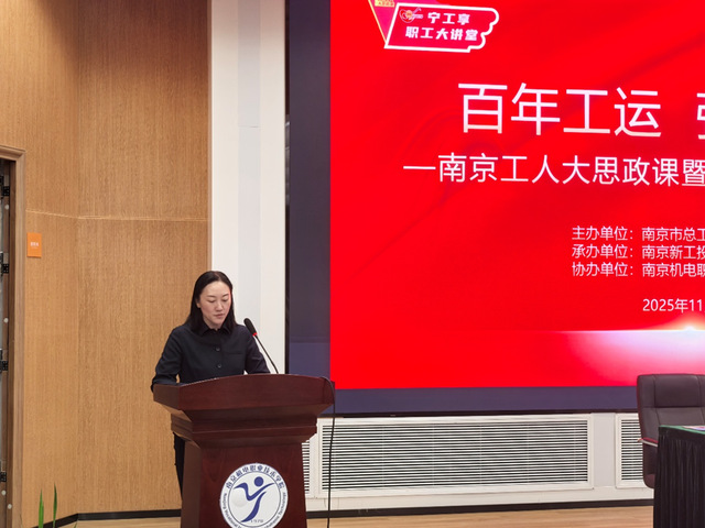 2025年11月27日,由南京市总工会主办、南京新工投资集团工会承办、beat365在线唯一官网工会协办的“百年工运 强会创先”南京工人大思政课暨劳模工匠巡讲活动在beat365在线唯一官网乐学楼102举行。南京新工投资集团工会副主席王春霞、beat365在线唯一官网工会主席姜振宇、机械工程系师生共同参与了本次活动。