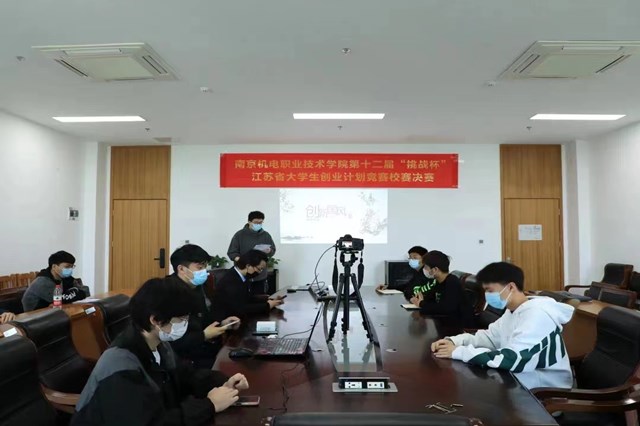 本次比赛由团委书记唐钰峤主持,共青团沛县委员会副书记、中国青年创业导师、南京师范大学等高校大学生创新创业导师杨绍金教授,东南大学电子科技与工程学院李晨教授,南京城市职业学院公共教学部办公室主任莫晓苏教授担任评委。受疫情影响,三位评委老师在线上参与了评审。