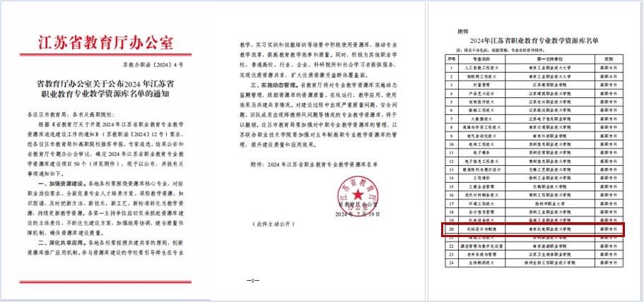 ·江苏省教学资源库——机械设计与制造专业教学资源库1个;
