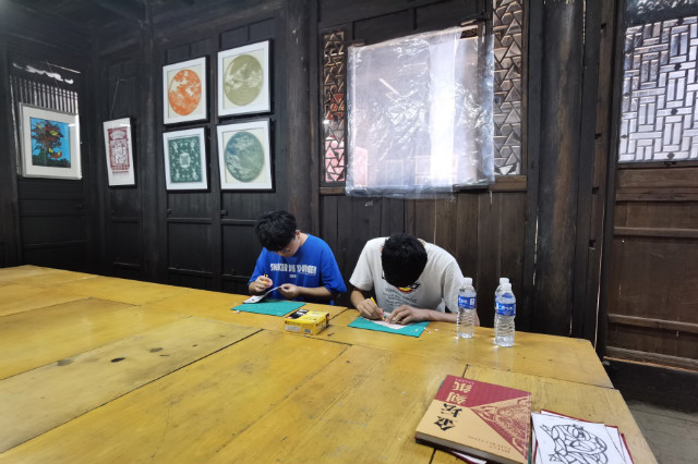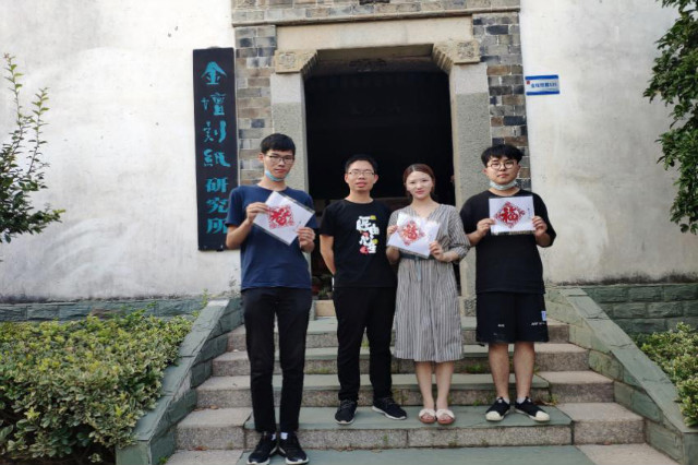 众所周知,金坛刻纸2009年入选“人类非物质文化遗产代表性名录”,成为了名副其实的世界级非遗。8月17日,朱倩老师带着学生们来到了金坛刻纸研究中心,在瞻仰了大师们的佳作之后,馆内工作人员王老师向团队成员详细讲解了刻纸的技艺特点,实践出真知,在听完老师的讲解之后,团队成员悉心体验了两天刻纸技艺,在反复的练习和摸索中,学生们逐渐掌握了一些技巧,比如:刀口不宜过长;刀口与纸的角度要尽量小;施力要慢且均匀等。在实践中,学生们感受到了传统艺术的魅力,并从自己的实践作品中获得了满满的成就感。