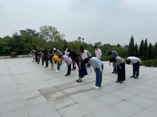 当天下午,该系全体党员教师,排着整齐的队伍,迈着沉重的步伐,怀着崇敬的心情,肃立在刻着“革命烈士永垂不朽”的纪念碑前,我系主任佟静同志和徐磊同志将敬献的花篮摆放在纪念碑前,仔细整理好缎带之后,带领参加活动人员向革命先烈鞠躬致敬,低头默哀,重温入党誓词,向革命烈士表达无限敬意与哀思。