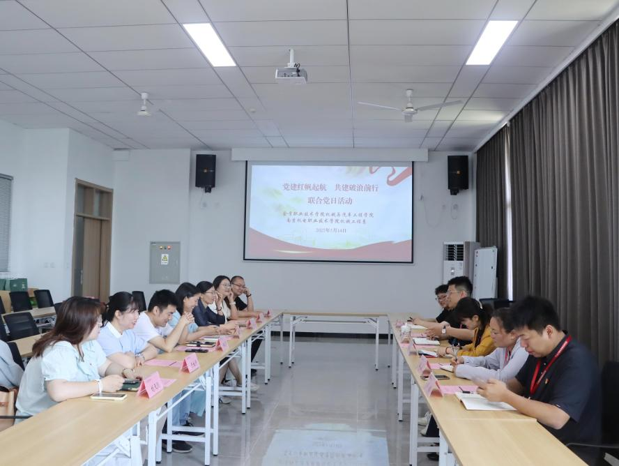 为深入贯彻落实党的二十届三中全会精神,扎实推进党建与业务深度融合,2025年5月14日9点30分,金肯职业技术学院机械与汽车工程学院党总支书记周秀珍、院长邹新的带领下,金肯职业技术学院机械与汽车工程学院党总支党员教师团队一行7人莅临beat365在线唯一官网,与机械工程系党支部共同举办了以“党建红帆起航 共建破浪前行”为主题的联合党日活动。机械工程系主任毛奇、支部书记胡枫及全体支委参与了此次活动。