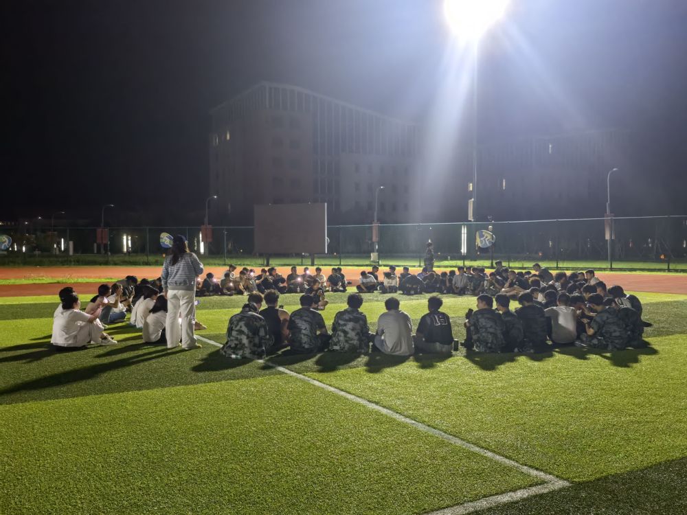 当夜幕降临,训练场上的严肃氛围被欢快的音乐悄然取代。操场上,有的同学带来动感十足的街舞,利落的动作点燃全场热情;有的同学自弹自唱,温柔的旋律在夜色中流淌,引发阵阵合唱;还有的同学表演脱口秀,用幽默的语言讲述军训趣事,让现场笑声不断。同时,各教室也热闹非凡,同学们或组队表演小品,或进行乐器合奏,或分享军训感悟,不同的形式传递着同样的青春朝气。