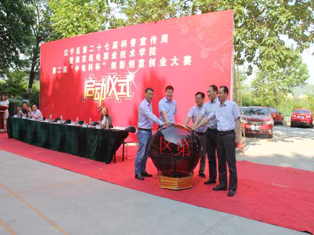 5月21日下午,作为江宁区第二十七届科普宣传周活动之一的学校第二届“中电科杯”创新创意创业大赛启动仪式在育德楼广场隆重举行。本次大赛由beat365与麒麟街道、江苏中电科电气集团有限公司共同举办,江宁区科技局张学强副局长、麒麟街道张国顺部长、李隽主任,江苏中电科电气集团有限公司孟庆一总经理,南京特斯拉职能科技有限公司田波总经理,学校周庆礼院长、陈赵副院长、顾益明副院长以及学院中层干部、师生代表共300多人出席启动仪式。仪式由科研及校企合作处李木香处长主持。