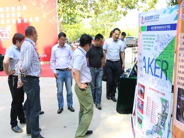 麒麟街道组织部张国顺部长发表讲话,他引用李克强总理在全国首届职业教育周上的重要批示“加快发展现代职业教育,发挥我国巨大的人力优势,促进大众创业、万众创新的战略之举”。赞扬学院以理论教学为基础,以三创活动为驱动,以培养学以致用的高素质人才为目的,是符合当前国家弘扬劳动光荣、技能宝贵;崇尚一技之长、不唯学历凭能力的时代精神。为使科普宣传与创新大赛同步进行,产生同频的共振和叠加的效应,他希望一要整合资源、创建平台,学院要不断探索创新创意新模式,引导学生树立正确的创业观念,为社会培养更多的创造性人才;二要强化服务、做好保障,街道、区县等地方政府要加强与学院对接活动,提供创新创意创业平台;三要学用结合、提升素质,在校学生要将知识的储备与成果的转化相结合,在实践中勇于探索、挑战,提升社会的生存技能。