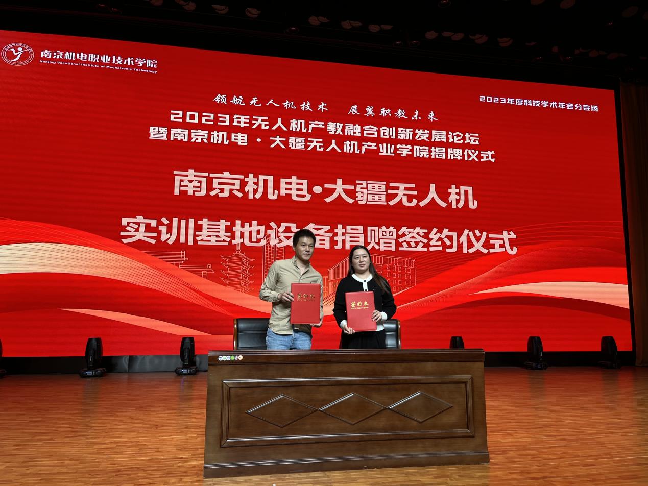 2023年10月24日下午,2023年度科技学术年会分会场——无人机产教融合创新发展论坛暨beat365在线唯一官网•大疆无人机产业学院揭牌仪式在学校青春剧场顺利举行。本次活动由南京市科学技术协会主办,由beat365在线唯一官网科协、南京市高淳区科协承办,由高淳职业教育集团、南京高淳高新技术产业开发区管理办公室、南京高等职业教育创新创业园等共同协办。南京航空航天大学研究生院副院长郑祥明,南京航空航天大学飞行器设计专业工学博士、教授唐正飞,高淳区科学技术协会副主席杨腊斌,南京高等职业教育创新创业园党工委委员、副主任孙爱国,深圳市大疆创新科技有限公司华东区代表滕菲,南京弘谷信息科技有限公司总经理赵华君,南京弘谷信息科技有限公司副总经理顾启凌,学校党委委员、副校长刁爱军,党委委员、纪委书记、工会主席姜振宇等领导出席本次活动。本次活动由学校科研及校企合作处处长李木香主持,电子工程系全体教师及学生代表,高淳职业教育集团理事单位江苏省高淳中等专业学校和高淳第一中学的师生代表参加了本次活动。