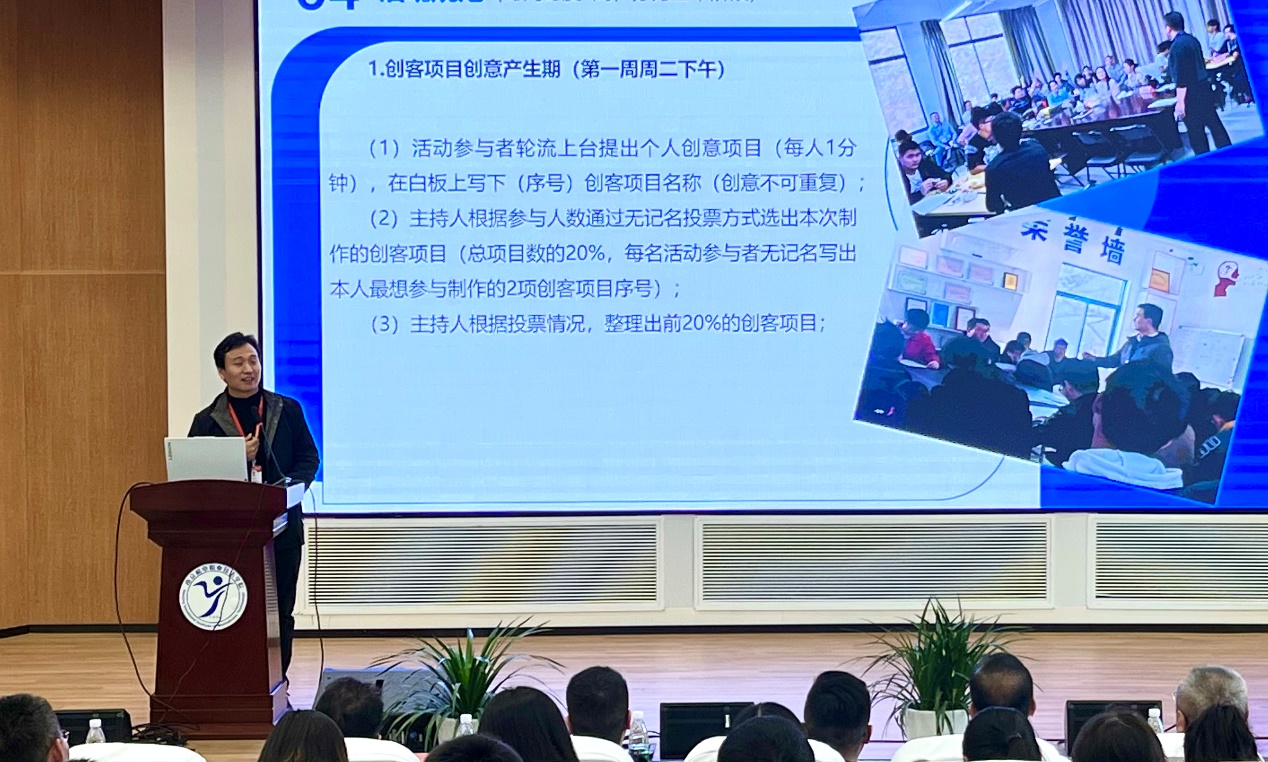蓝岛创客空间主任王国珍面向全体师生发布“创客周”行动计划。他表示,在创客周中,全体师生将体验从创意产生到原型制作再到路演展示的全过程,在创意的海洋里碰撞思维、激发灵感,充分体验创新点子转化为物化成果的成就感,推进创客校园建设向纵深发展。