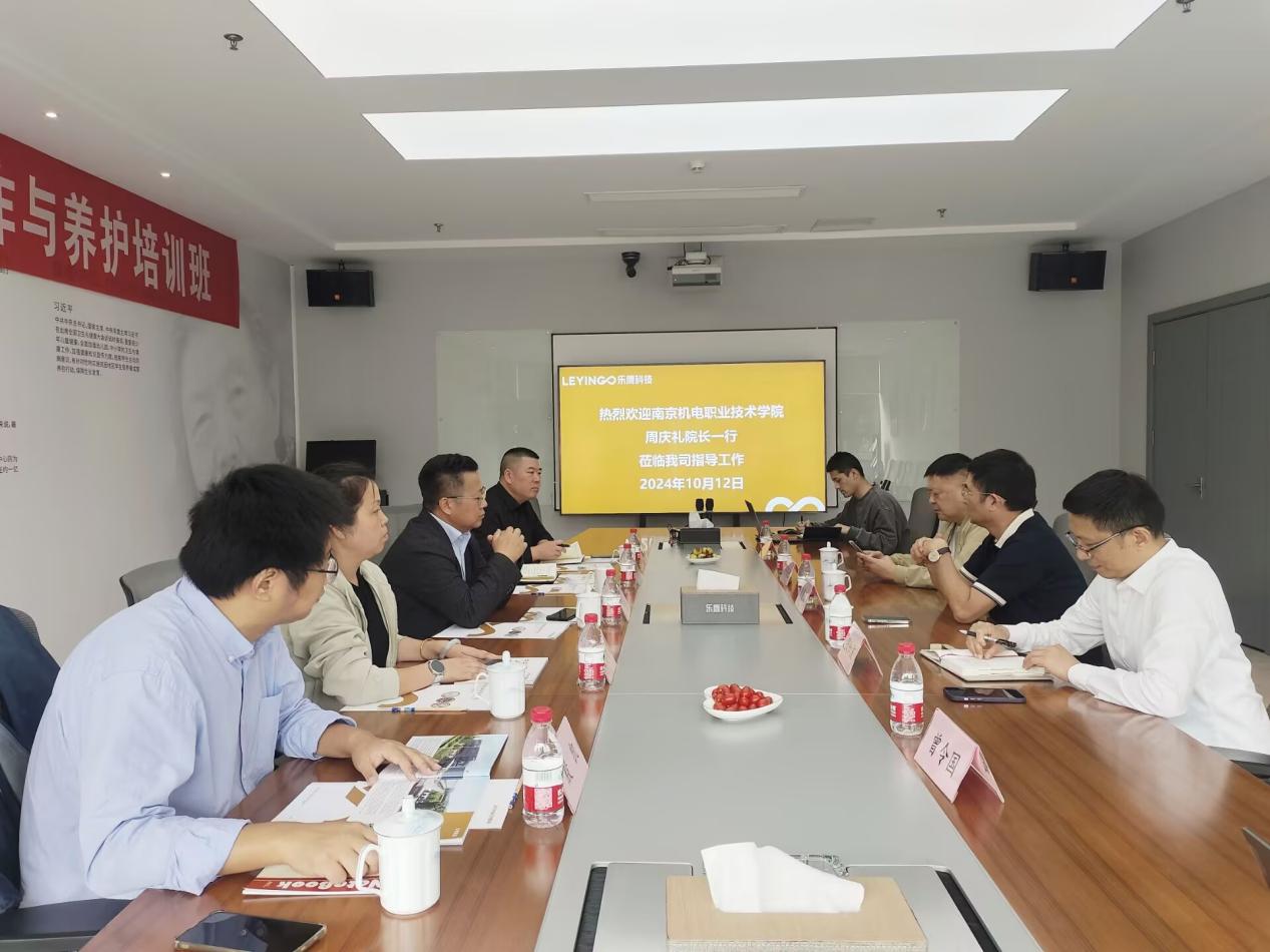2024年10月12日下午,学校党委书记、校长周庆礼一行5人应邀前往南京乐鹰科技股份有限公司、乐惠国际集团进行交流参观和调研。