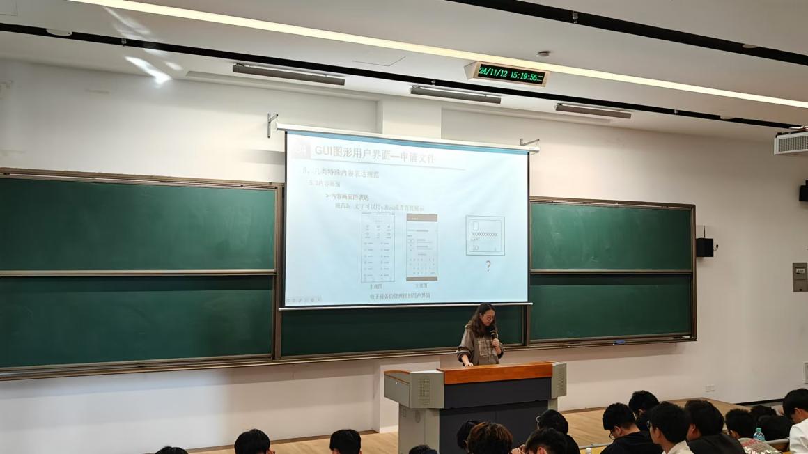 (南京天翼的专利讲师在善学楼102为信息系师生授课)