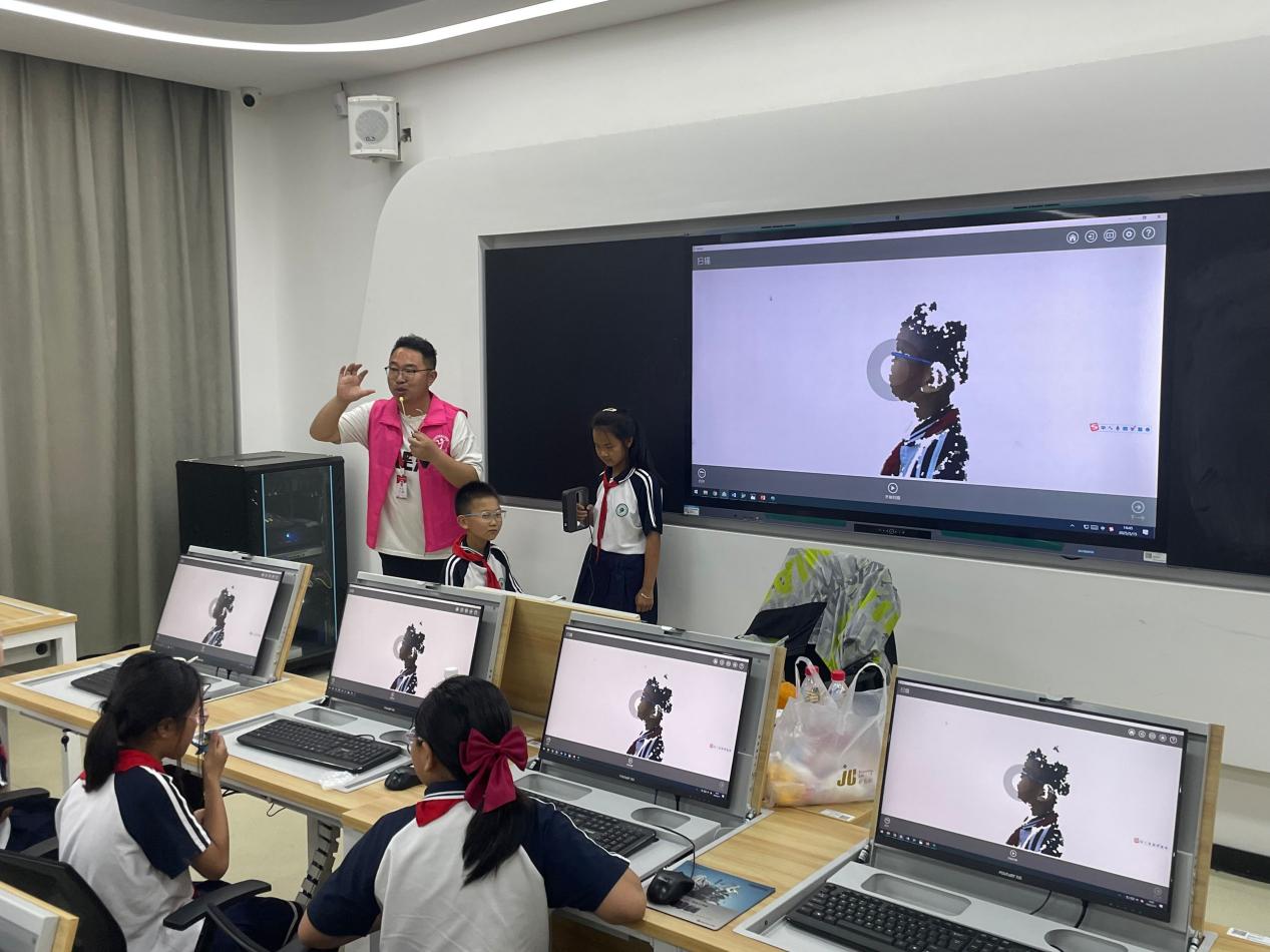 产教融合型科普实践平台由现代产业学院和技术创新平台构成。在大疆无人机产业学院,孩子们参观了在电子工程系教师司翠平和郑明明的指导下化身无人机飞手,亲自操控无人机在模拟飞行实验室中自由飞行。在3D打印(增材制造)实验室,机械工程系徐磊老师指导孩子们运用3D打印技术制作铁齿钢牙,让孩子们充分体会了“工学结合”的魅力。