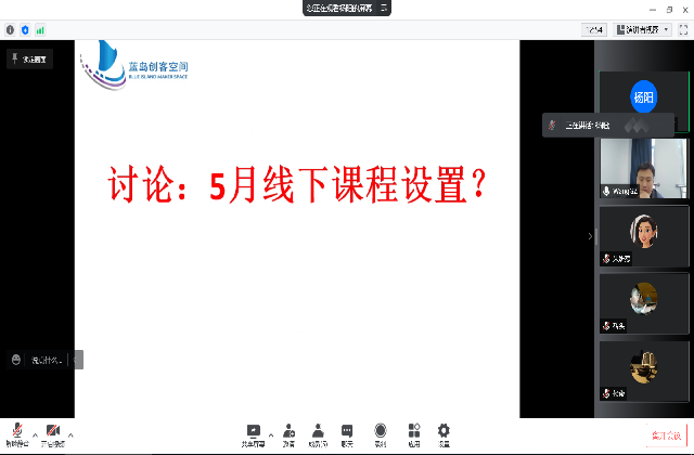 为响应学院疫情防控要求,及时调整“双创教育试点班”课程安排,蓝岛创客空间创新教研室于5月3日举行双创教育试点班线上研讨会。会议由蓝岛创客空间杨阳老师主持,蓝岛创客空间王国珍主任及全体创新教研室教师参加。
